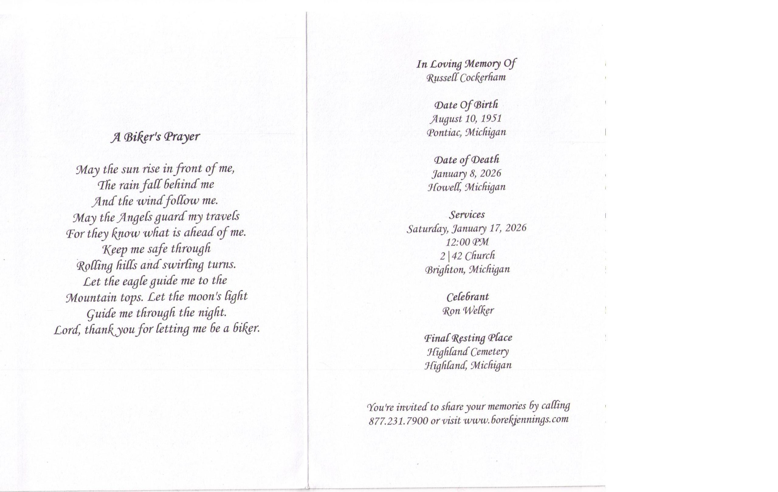 A short pause for a lost leader of the MCOC. Russell Cockerham will be greatly missed.